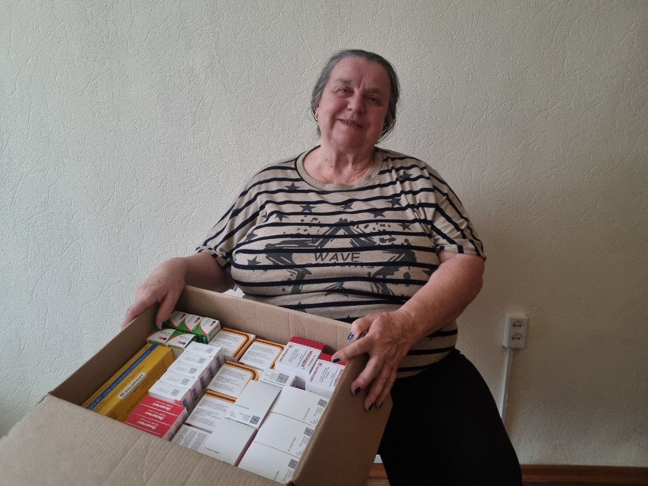 26 ноября 2025. Друзья, мы передали Людмиле Валериановне запас лекарственных препаратов для лечения хронических заболеваний.