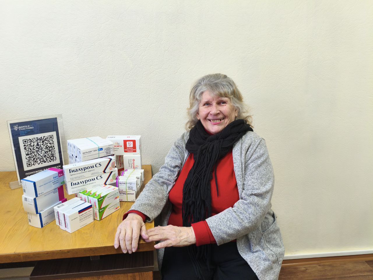 Благодаря вашей помощи мы передали подопечной большой запас сердечно-сосудистых препаратов, а так же дорогостоящие инъекции от артроза. Теперь у пожилой женщины будет чуть меньше было поводов для грусти, и чуть больше поводов для радости. Спасибо за помощь, друзья!