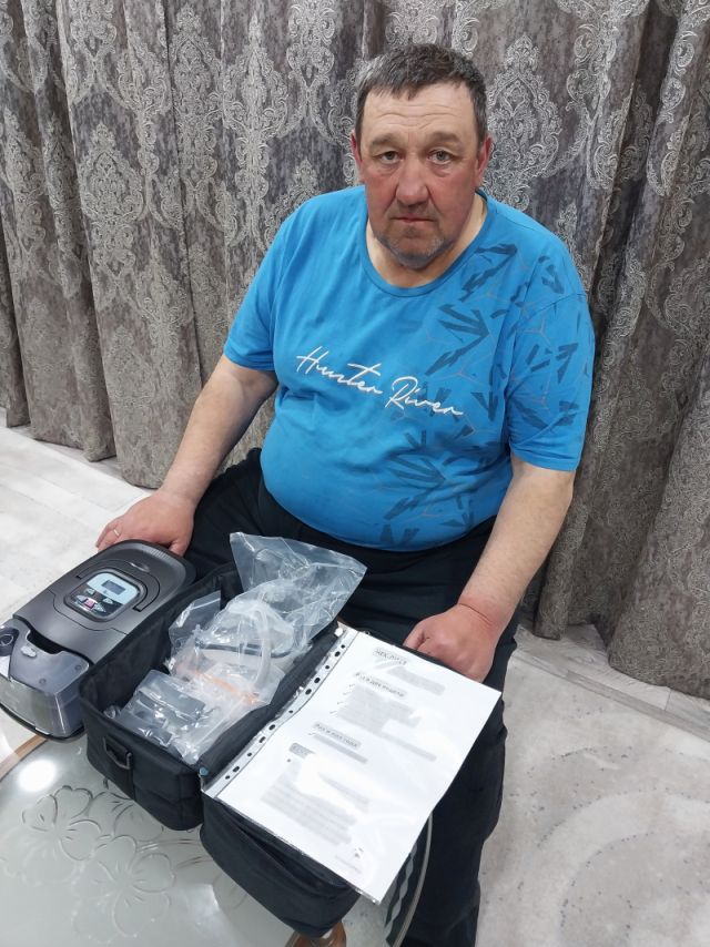 10 апреля 2026. Друзья, мы передали Евгению Николаевичу СИПАП-аппарат для лечения синдрома обструктивного апноэ сна.