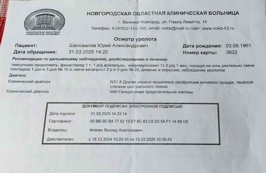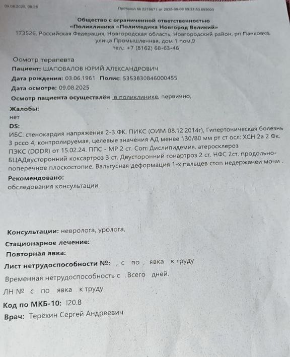 Помимо контузии, все пережитое привело к усугублению сердечных заболеваний. Мужчине поставили кардиостимулятор, но это не решило всех проблем со здоровьем. Поражение сосудов головного мозга, нарушение функций тазовых органов, тяжелая дисфункция мочевого пузыря, атеросклероз, гипертония — далеко не полный перечень его заболеваний.