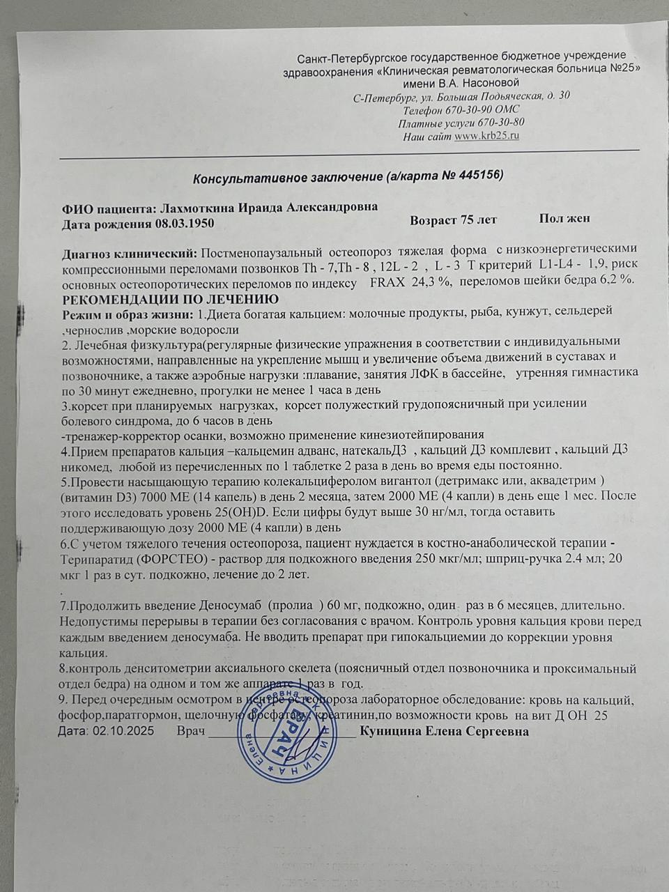 Лекарственный препарат для лечения тяжелого прогрессирующего остеопороза, осложненного множественными переломами.