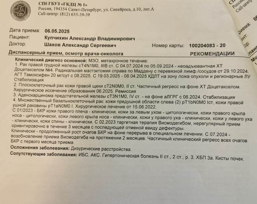 Александр Владимирович — человек в общении очень позитивный, доброжелательный. Сложно поверить, что у него три онкологических диагноза, множество сопутствующих заболеваний, что он проходит тяжелое длительное лечение, и пока еще даже не на финишной прямой.